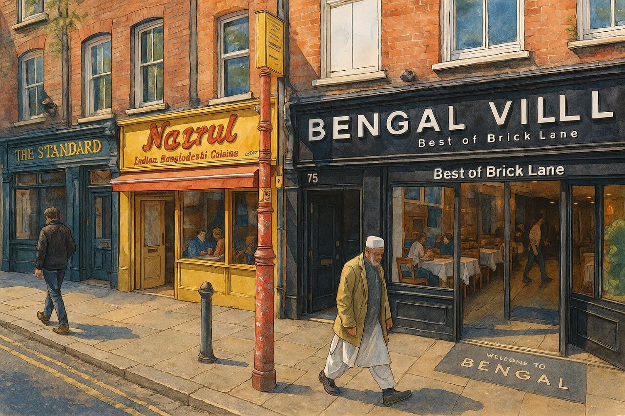 Painting of Indian restaurants at Brick Lane, London (View image in full size)