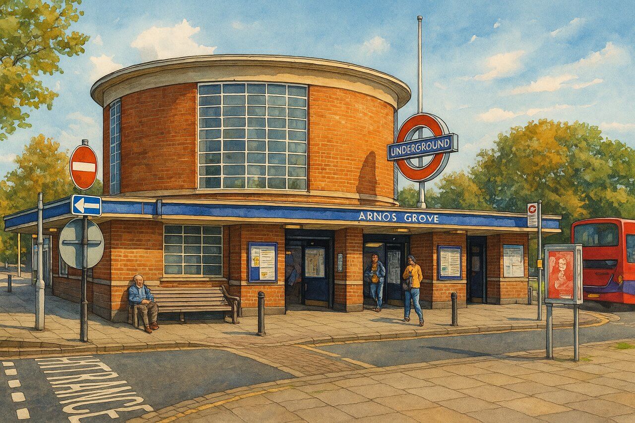 Arnos Grove Station is located in the London Borough of Enfield, in North London. It lies in Travelcard Zone 4.
