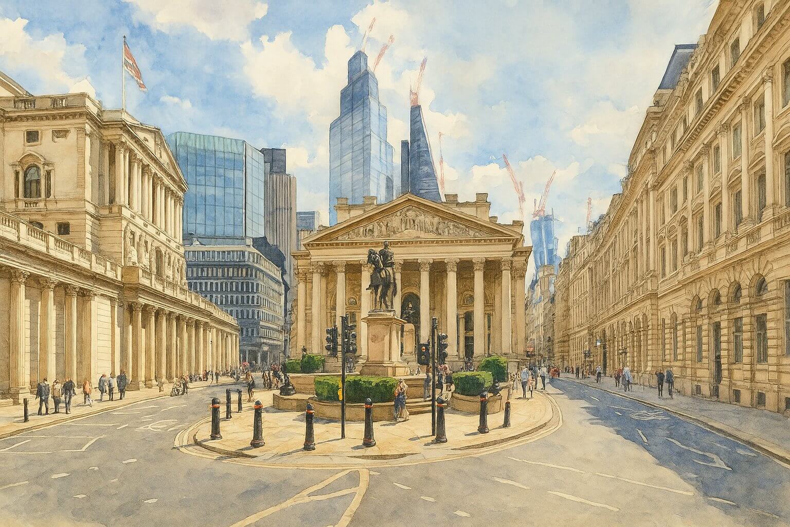 Watercolour painting of Bank, London