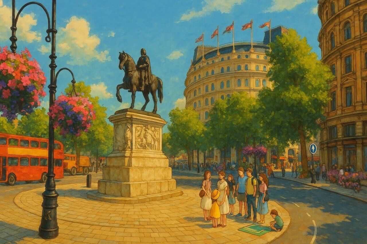 Northumberland Avenue. It is one of the most iconic crossroads in the capital and a geographical and symbolic heart of London.