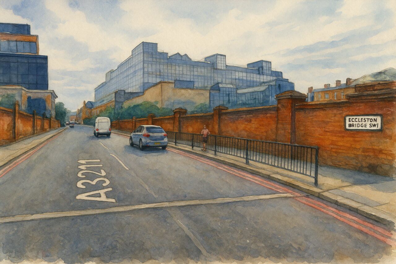 The bridge is situated just south of the main concourse of Victoria Station, one of London’s major transport hubs. It lies entirely within the SW1V postcode area and falls under the administrative jurisdiction of the City of Westminster. The western end begins at Eccleston Street, a quiet road leading toward Belgravia, while the eastern end flows into Belgrave Road, a grand avenue extending into Pimlico.