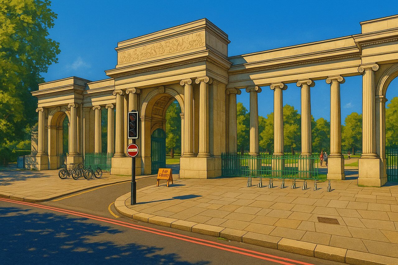 Today, Hyde Park Corner is both a functional urban junction and a place of reflection, surrounded by monuments and lush greenery. Despite the heavy traffic, pedestrians can access all parts of the area via subways and crossings. The central island, dominated by the Wellington Arch, provides a moment of respite amid the bustle of the city. The surrounding buildings — including luxury hotels and embassies — reflect the opulence of Westminster.